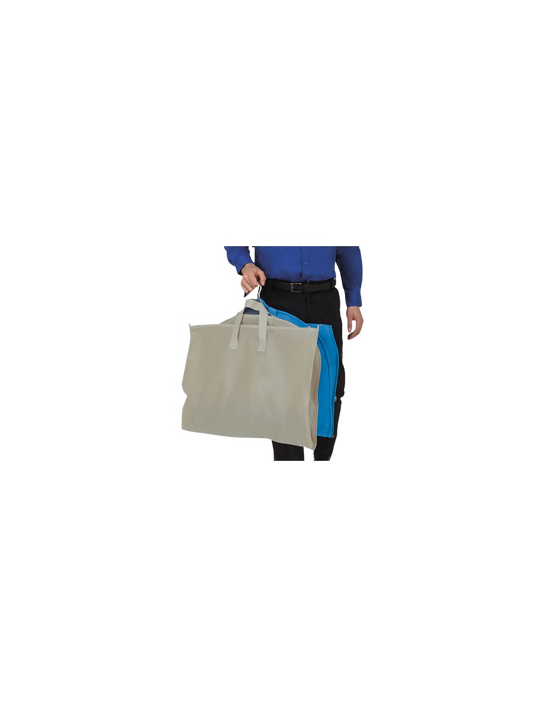 Permite el paso de la percha gracias a una abertura superior y dos asas que permitirán su extendido o doblado por la mitad. Cuenta con un cierre de cremallera en la zona inferior para mantener la seguridad de la prenda.