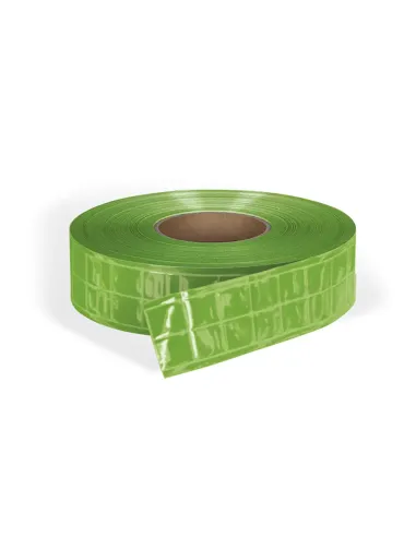 Se vende en rollos completos de 50 metros de largo y 5 centímetros de ancho, ideales para producciones específicas o accesorios de visibilidad. Es una excelente opción para ropa laboral que exige durabilidad y seguridad en condiciones adversas. Su composición es 100% PVC, con una densidad de 110 g/m².