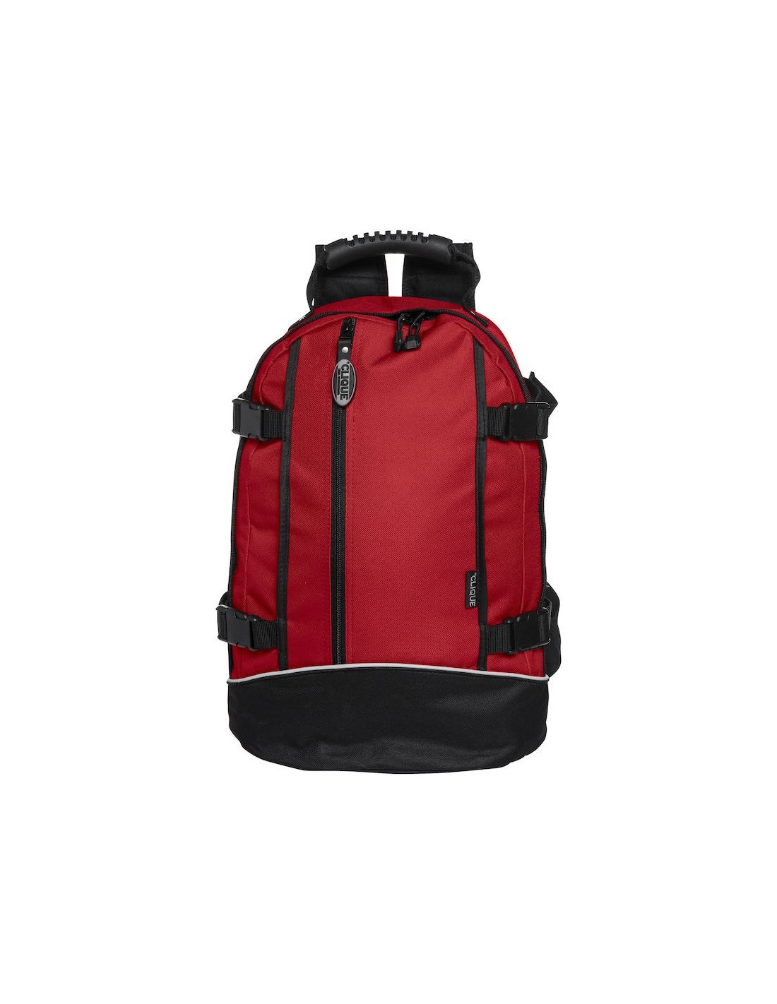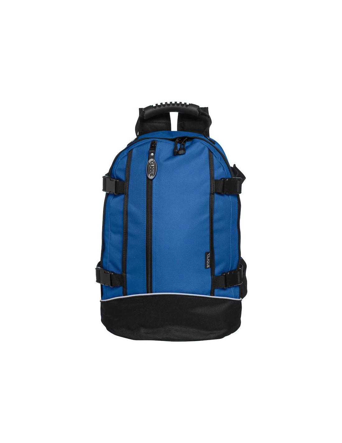 Esta mochila deportiva está confeccionada en nylon. Cuenta con ceñidores ajustables a cada lado, un bolsillo frontal con cremallera visible, asa rígida de caucho, varios bolsillos pequeños y uno especial para el móvil. Es una mochila muy cómoda gracias a su tejido acolchado en la espalda, además de sus tirantes adaptables y acolchados. Disponible en colores rojo, azul royal, azul marino y negro. Dimensiones y volumen: 46x28x13cm ≈ 16
