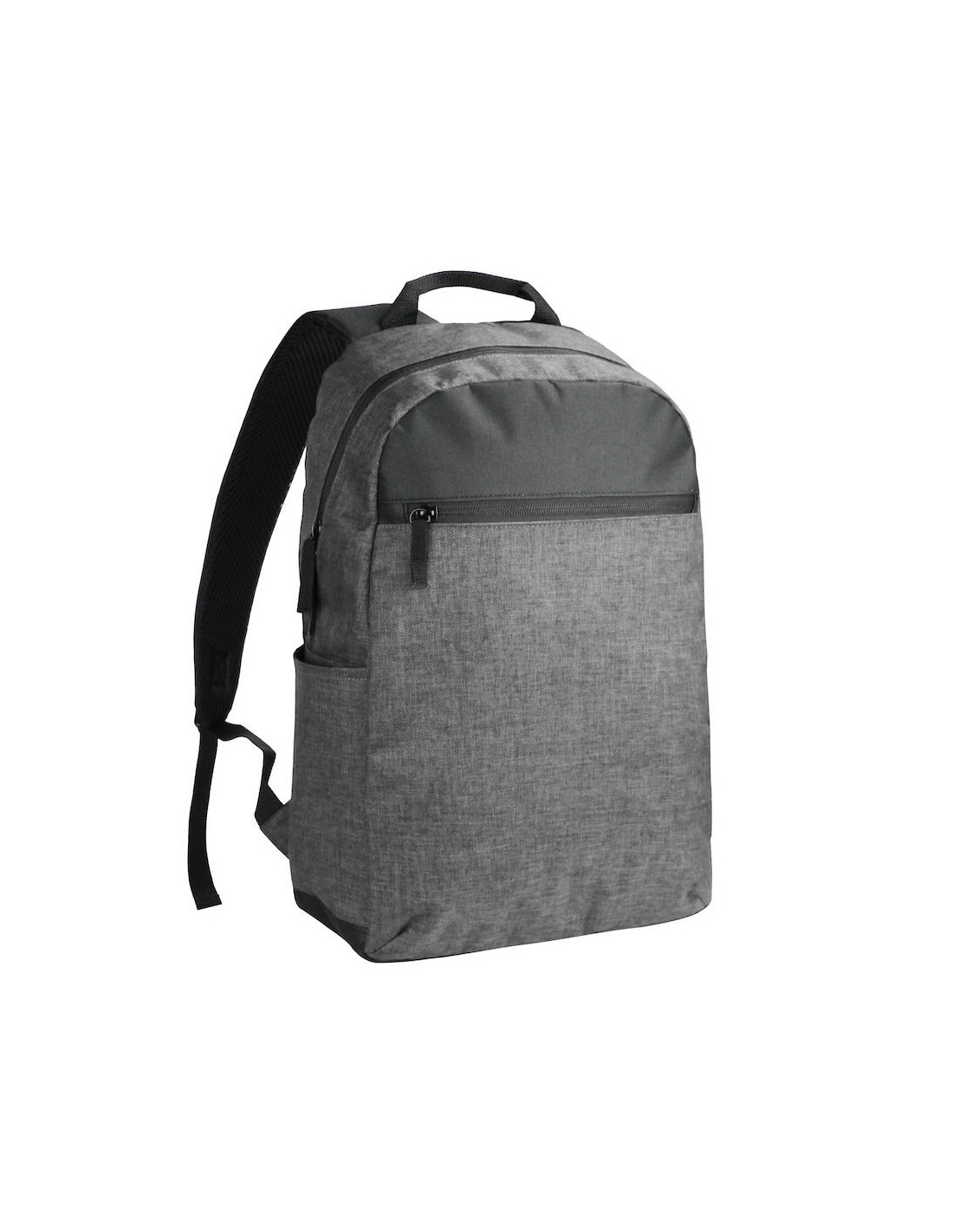 Mochila confeccionada en poliéster, con cremallera en compartimento principal y bolsillo exterior, bolsillo lateral y asas acolchadas y ajustables.
