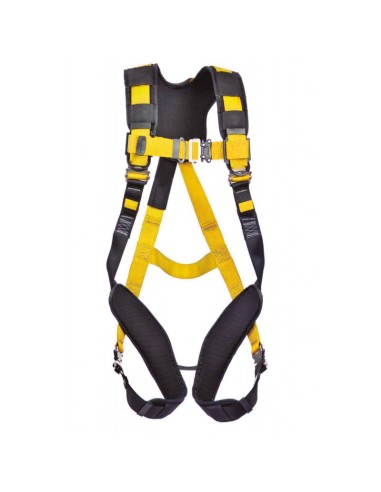 Incorpora un indicador de caídas y sus hebillas son todas de cierre rápido. Incluye un enganche doral y dos tipos diferentes de enganches frontales. Presenta dos enganches de tipo loops y dos puntos de enganche metálicos independientes.