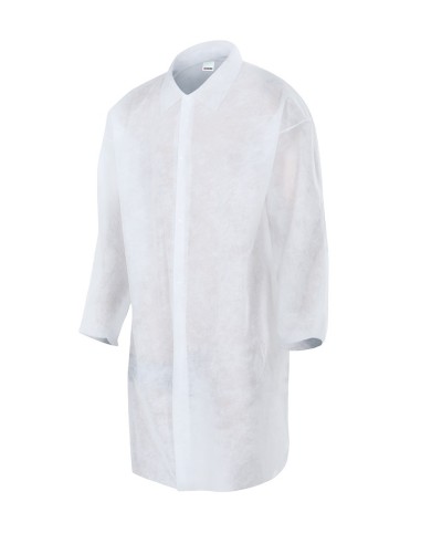 Pack de 25 unidades de batas desechables del fabricante Velilla modelo 66. Confeccionado en TNT