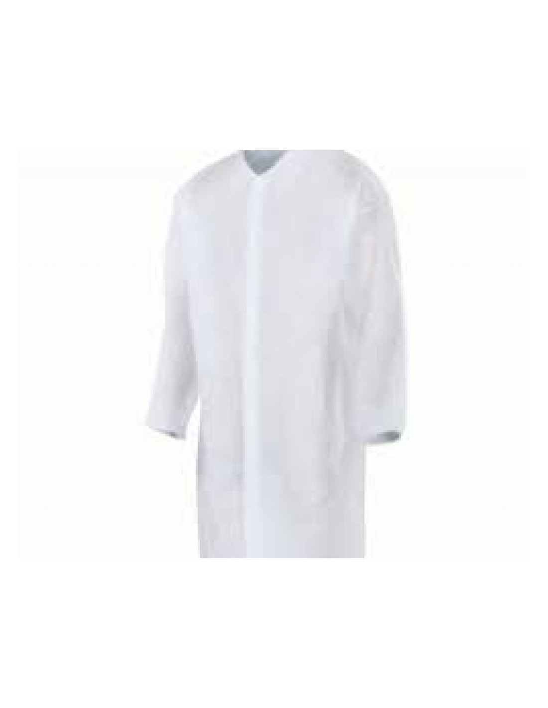 bata desechable de 25 gramos con velcro unibásica. Además si lo deseas este modelo de bata de usar y tirar para almacén viene en cajas de 200 unidades siendo perfectas para tener en nuestro negocio y cumplir con las normativas actuales.