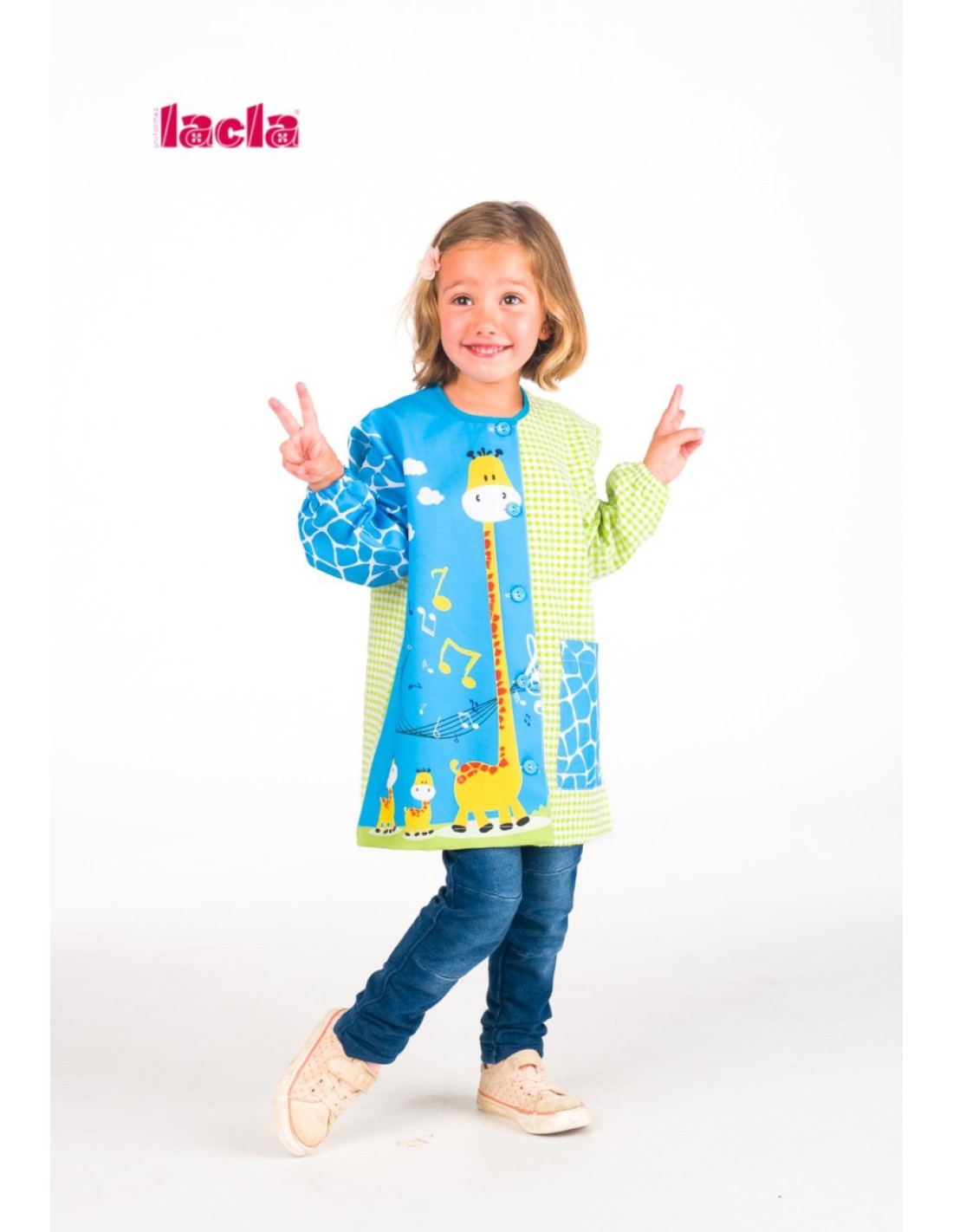 Bonito babi para los alumnos y alumnas del colegio público Ana Caicedo de Lorca en la Región de Murcia, disponible en diferentes tallas y de color celeste con cuadros junto el bordado en el pecho.
