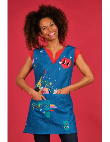 Estola modelo art del fabricante uniformes Lacla, una divertida y actual estola especialmente apropiada para maestras.