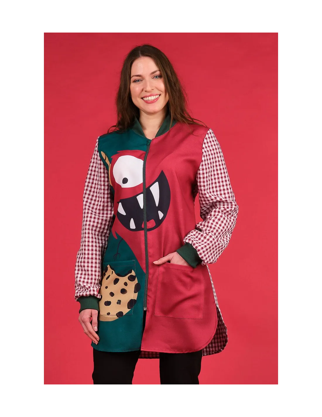 Bata para maestra de manga larga monstruo galleta de Lacla.