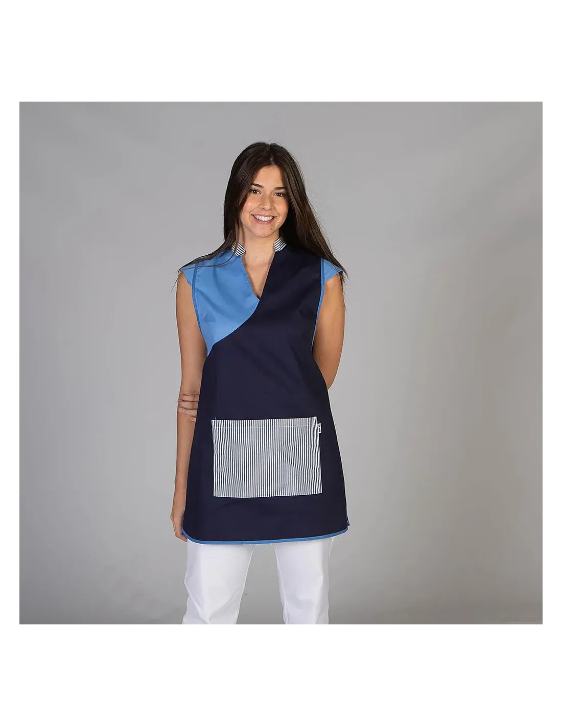 La Casulla Estela de Garys (Ref. 2131) es una prenda laboral elegante y funcional, con cuello mao, bolsillo central, pinzas en sisas y espalda, y tiras laterales ajustables. Ideal para hostelería, cocina, panaderías, pastelerías, limpieza y comercio.