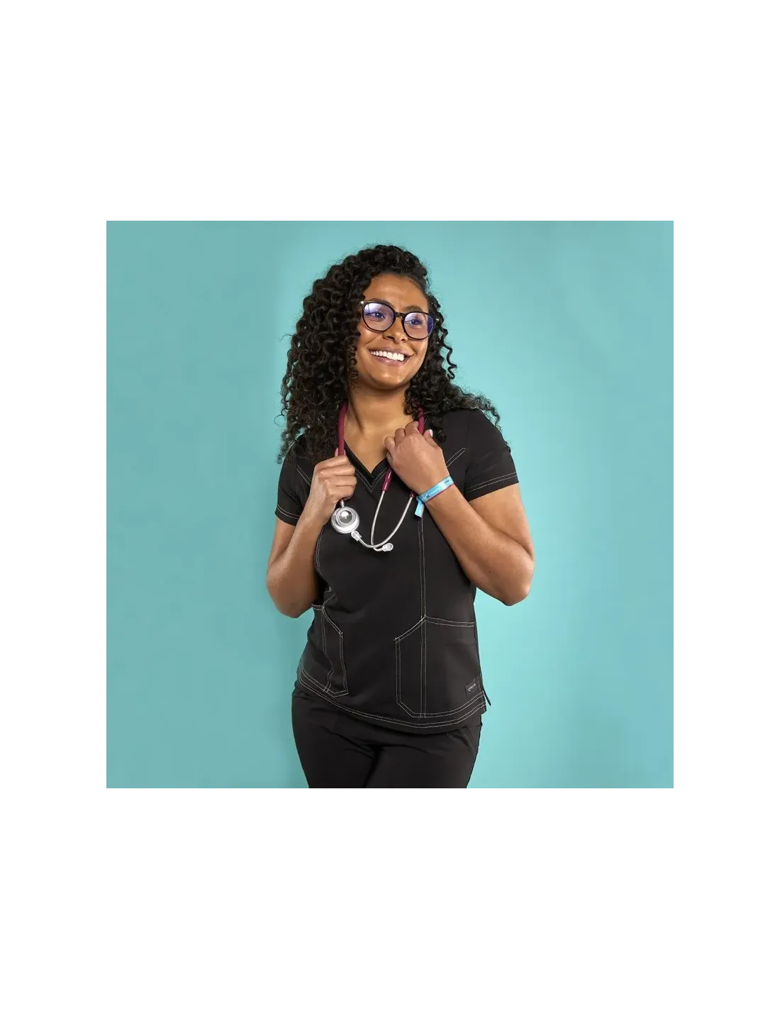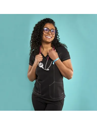 Casaca para mujer de tejido antibacteriano modelo ENERGY. Una casaca de la línea pressence que está compuesta por un 5% spandex y un 95% poliéster lo que la hace una prenda con buena caída, fácil planchado y anti olor, entallada y con cuello en V.