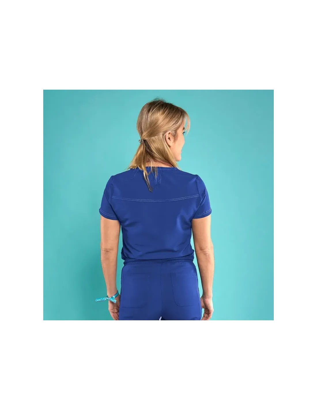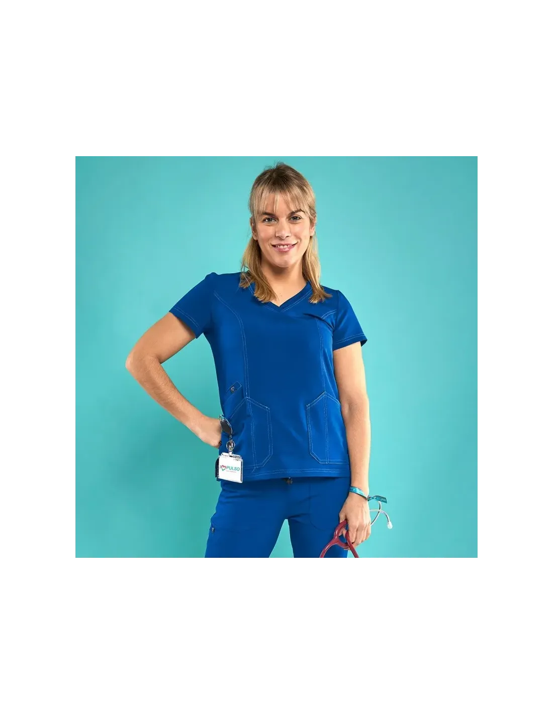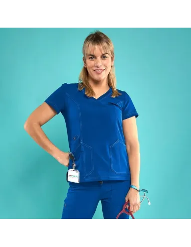 Casaca para mujer de tejido antibacteriano modelo ENERGY. Una casaca de la línea pressence que está compuesta por un 5% spandex y un 95% poliéster lo que la hace una prenda con buena caída, fácil planchado y anti olor, entallada y con cuello en V.
