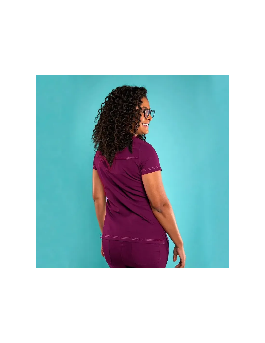 Casaca para mujer de tejido antibacteriano modelo ENERGY. Una casaca de la línea pressence que está compuesta por un 5% spandex y un 95% poliéster lo que la hace una prenda con buena caída, fácil planchado y anti olor, entallada y con cuello en V.