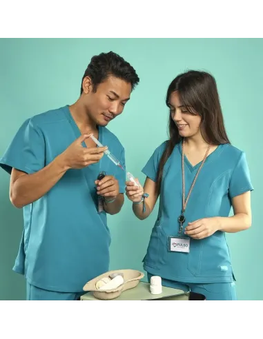 Casaca para mujer de tejido antibacteriano modelo ENERGY. Una casaca de la línea pressence que está compuesta por un 5% spandex y un 95% poliéster lo que la hace una prenda con buena caída, fácil planchado y anti olor, entallada y con cuello en V.