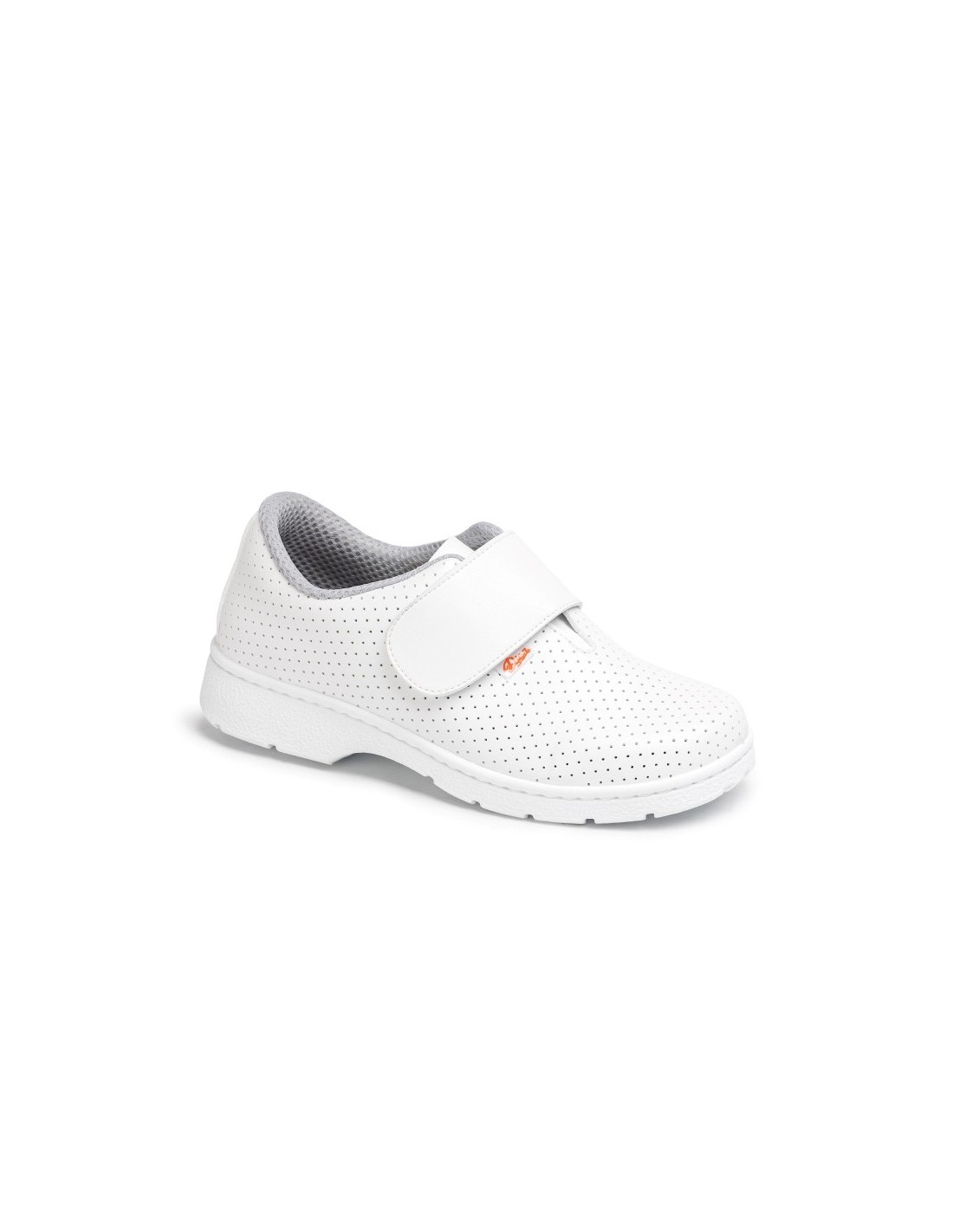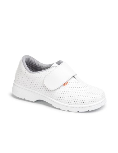 El 1807-LM es un zapato perforado en su totalidad, hiper ventilado y altamente transpirable, sin ninguna costura interior con cierre de velcro. Suela antideslizante de gran coeficiente en seco y húmedo. Fabricado mediante montado y cosido de seguridad para reforzar la suela al corte del zapato. Contrafuerte de dureza suficiente para sujetar el calcaneo. Plantilla de tejido de poliuretano con tratamiento antibacterias y carbón activado. Horma fisiológica de puntera redondeada. Origen español. Lavable en frio y caliente hasta 40º. Pala de microfibra de tipo técnico con alta capacidad de absorción de humedad y rápido secado. Antideslizante en baldosa y agua con detergente como lubricante. Parte trasera cerrada, antiestático, absorción de energía en el tacón, suela con resaltes. Forro transpirable.