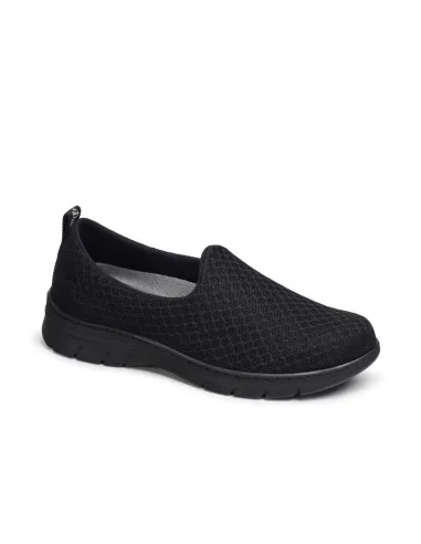 Zapatilla de una sola pieza, con un solo corte y sin costuras. Tiene un corte textil transpirable y también repele los líquidos. Forrado interior hecho de material textil acolchado, el collarín esta acolchado en el tobillo para evitar rozaduras. Con una horma recta de puntera redondeada. Tiene una dureza suficiente como para sujetar el calcaneo. Tiene una plantilla hecha de material textil acolchada, espuma de poliuretano termoconformado con tratamiento antibacterias y carbón activado. Suela hecha de un material compuesto, es cómoda, ligera, confortable y lo mejor es que es antideslizante. Se pueden lavar en lavadora hasta los 40º. Son de origen español. Tiene las canaladuras anchas para facilitar la evacuación de líquidos.