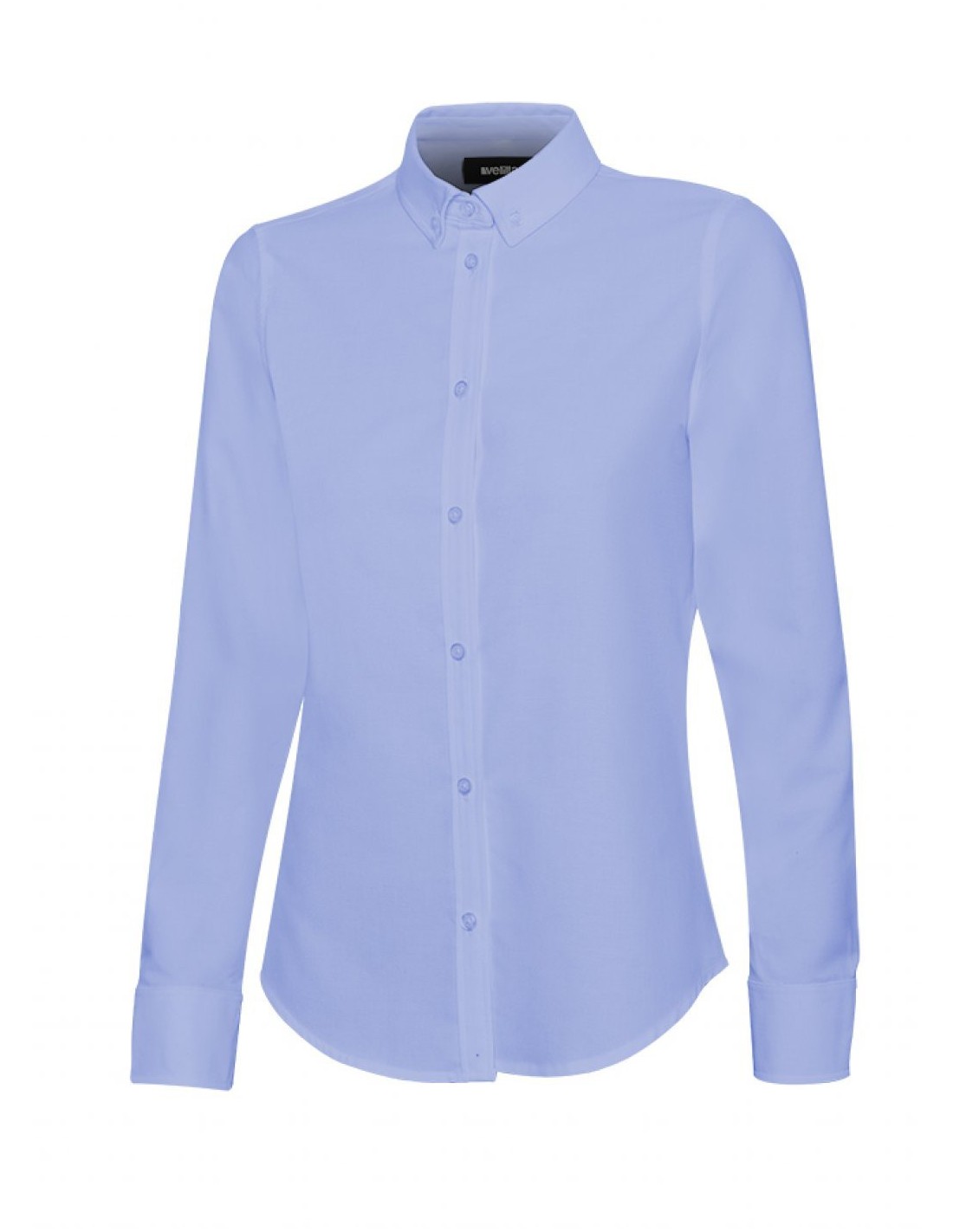 La camisa oxford de mujer con cuello camisero y manga larga de Velilla 405005S es una camisa elegante y cómoda para la hostelería, fabricada con tejido oxford stretch, que ofrece durabilidad, flexibilidad y versatilidad.