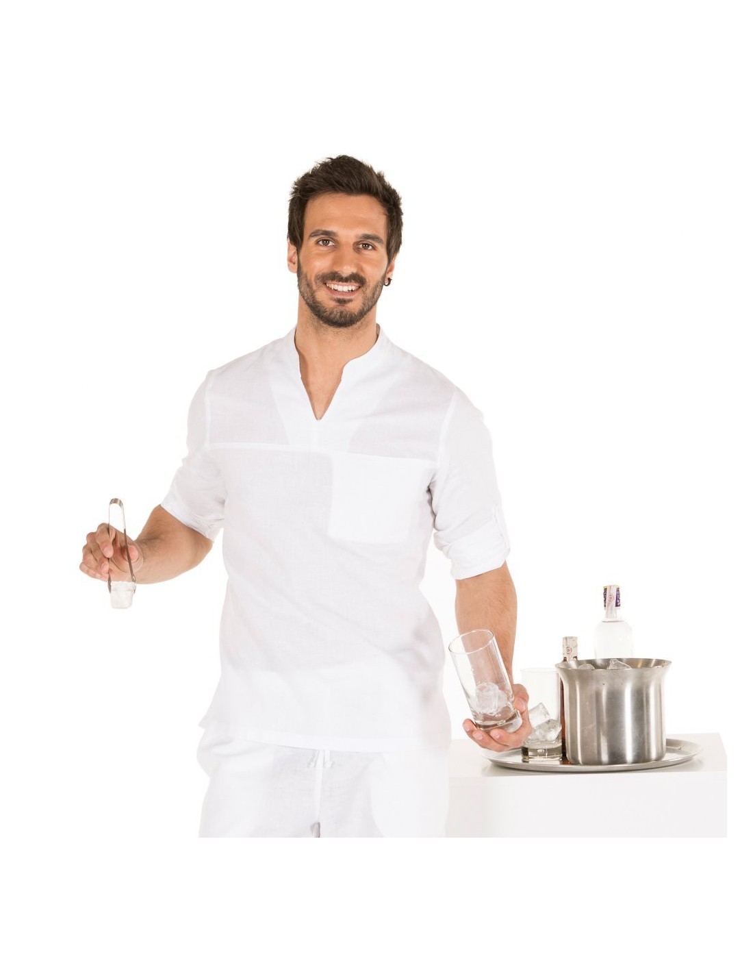 Camisa de hombre modelo LINO en plana con una composición de 165 gramos m2 en 50% lino y 50% algodón.