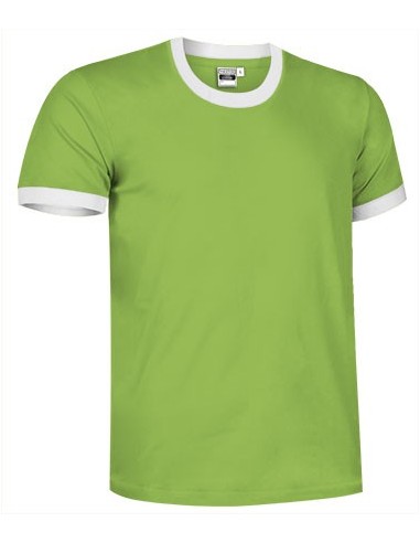 Divertida camiseta bicolor de corte clásico, confeccionada en tejido de punto liso 100% algodón peinado. Cuello redondo y bocamangas en canalé con diferente color a contraste. Doble pespunte en cuello, bajo y mangas. Disponible en un amplio surtido de colores combinados. Vistosa y con estilo.