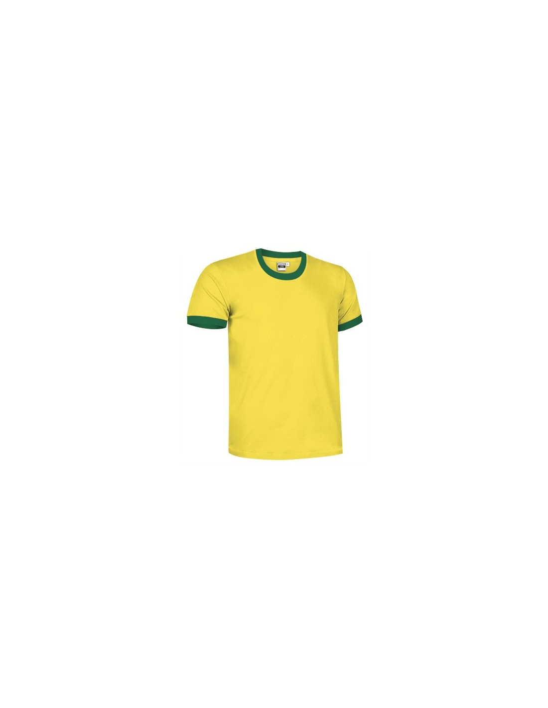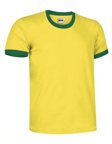 Divertida camiseta bicolor de corte clásico, confeccionada en tejido de punto liso 100% algodón peinado. Cuello redondo y bocamangas en canalé con diferente color a contraste. Doble pespunte en cuello, bajo y mangas. Disponible en un amplio surtido de colores combinados. Vistosa y con estilo.