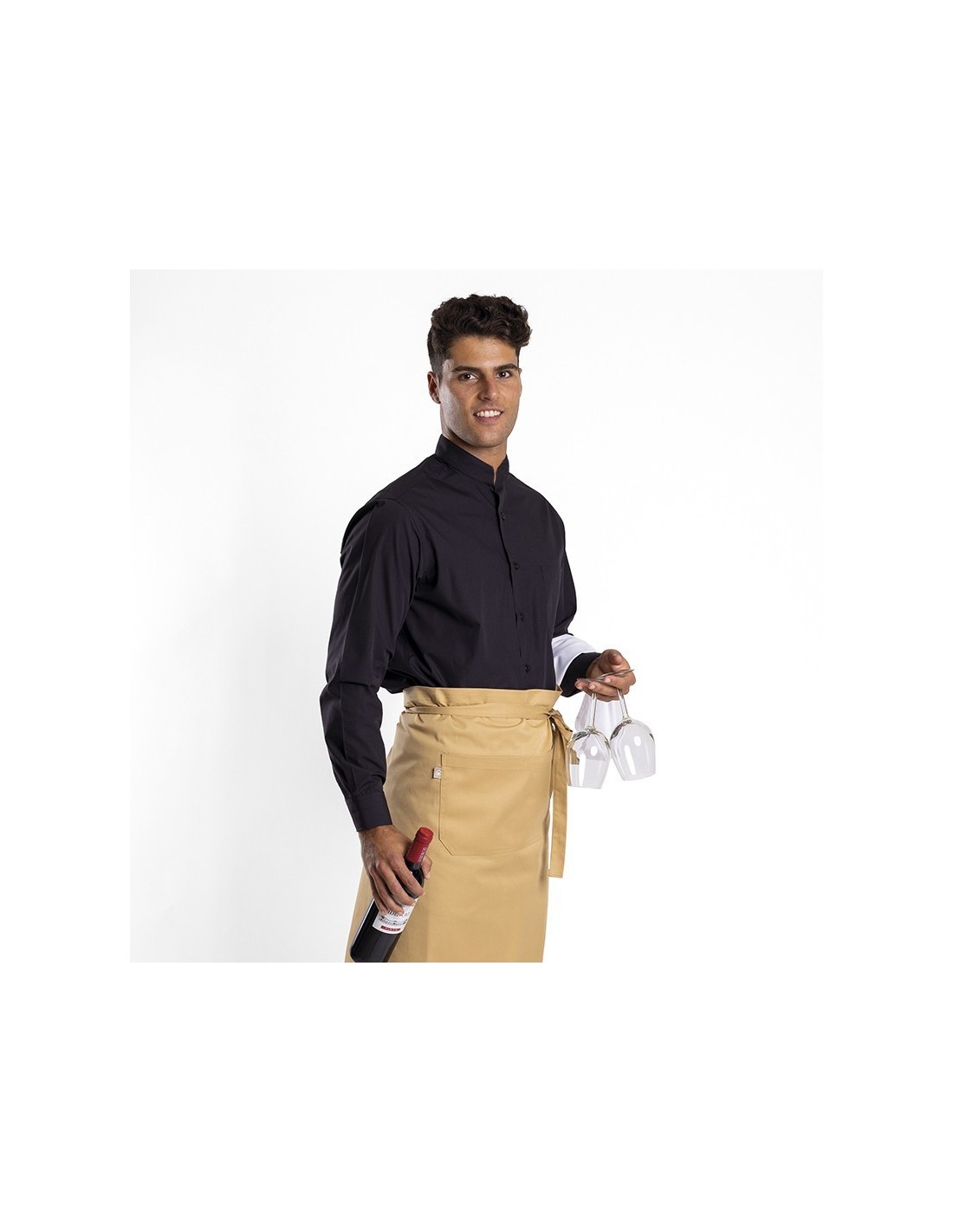 Llega a Lorcaepis una camisa con cuello mao tipo chino y bolsillo en el pecho. Contiene un doble ojal para gemelo, dos botones para ajustarse el puño, costura francesa en sisa y cargadas en costado. Es de gran calidad e ideal para combinar con tu ropa de hostelería para camarero, servicio de sala, cafeterías...
