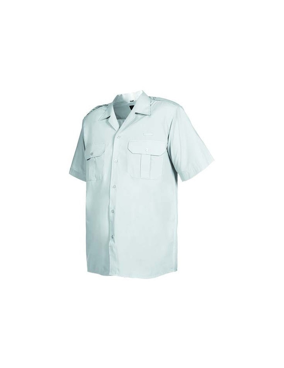 Esta camisa es unisex, de manga corta y cuello regulable. Contiene charreteras, tablón en la espalda, bolsillos con fuelles y tapetas y portachapas.
