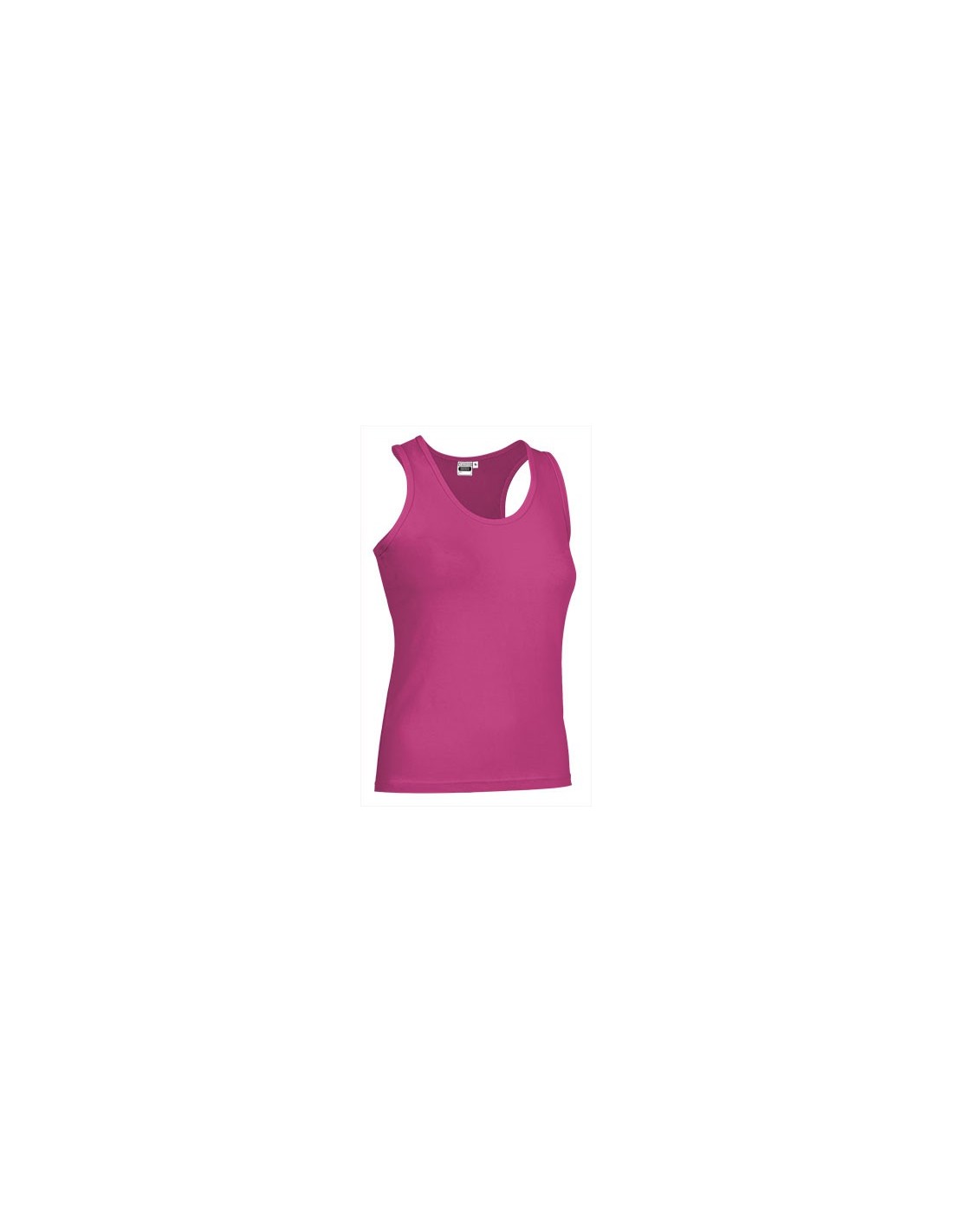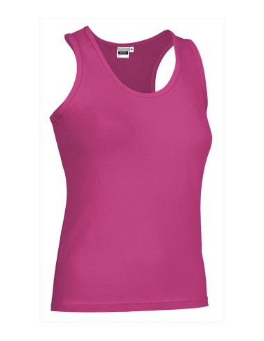 Camiseta de mujer ajustada con tirantes anchos. Se adapta perfectamente al cuerpo por su confección en punto liso elástico de algodón peinado y elastano, permitiendo una gran libertad de movimientos. Tirantes, cuello y sisas ribeteados, doble pespunte en bajo. Disponible en una amplia gama de colores.