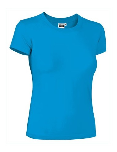 Camiseta clásica con forma de mujer, ligera y cómoda, confeccionada en tejido de punto liso 100% algodón peinado. Manga corta, cuello redondo y doble pespunte en cuello, bajo y mangas. Disponible en una amplia gama de colores.