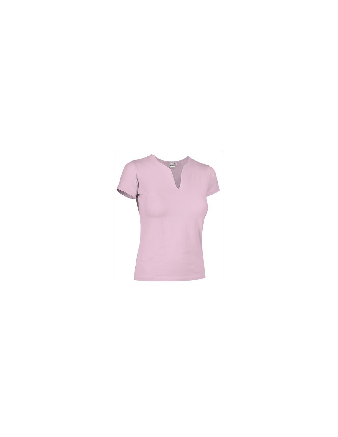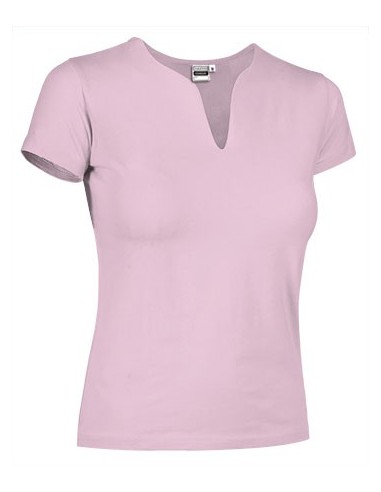 Camiseta ajustada de mujer con manga corta, de estilo diferente gracias a su cuello en forma de lágrima. Se adapta perfectamente al cuerpo por su confección en punto liso elástico de algodón peinado y elastano, permitiendo una gran libertad de movimientos. Doble pespunte en bajo y mangas. Disponible en una amplia gama de colores.