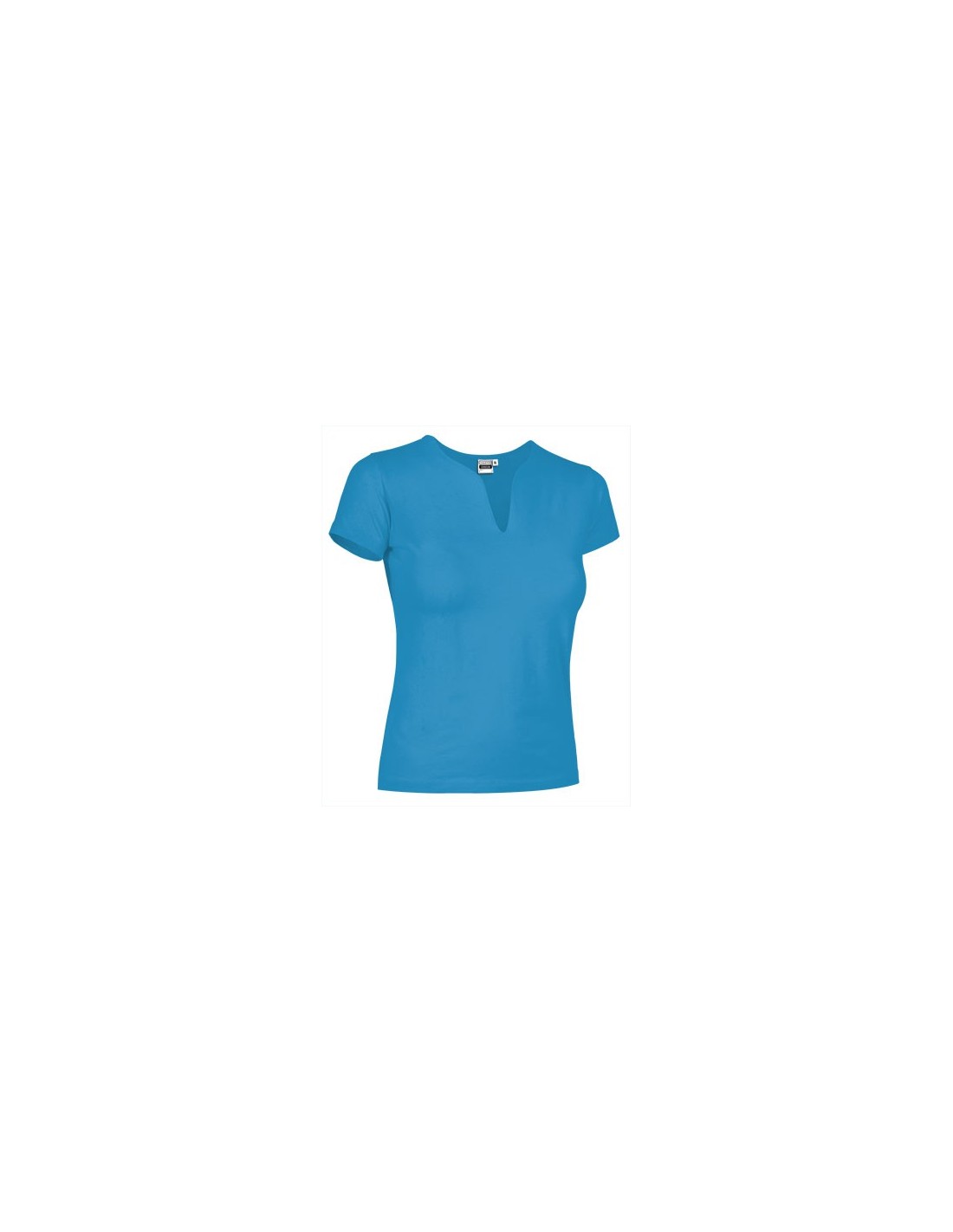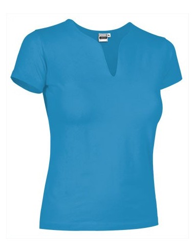 Camiseta ajustada de mujer con manga corta, de estilo diferente gracias a su cuello en forma de lágrima. Se adapta perfectamente al cuerpo por su confección en punto liso elástico de algodón peinado y elastano, permitiendo una gran libertad de movimientos. Doble pespunte en bajo y mangas. Disponible en una amplia gama de colores.