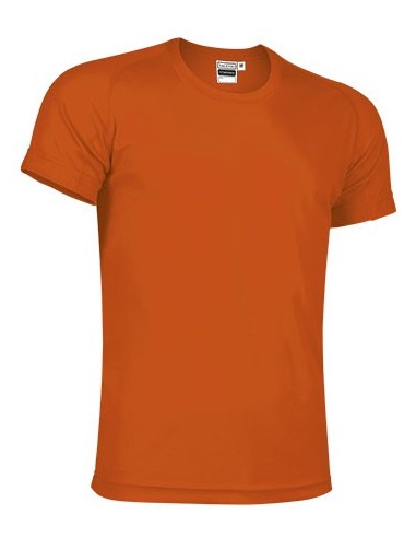 Camiseta ligera, especialmente preparada para hacer deporte por su confección en tejido técnico transpirable, que facilita la evacuación del sudor corporal. Manga corta ranglán partida, cuello redondo y doble pespunte en bajo, cuello y mangas. Disponible en un amplio colorido que incluye colores muy vivos.