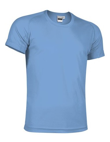 Camiseta ligera, especialmente preparada para hacer deporte por su confección en tejido técnico transpirable, que facilita la evacuación del sudor corporal. Manga corta ranglán partida, cuello redondo y doble pespunte en bajo, cuello y mangas. Disponible en un amplio colorido que incluye colores muy vivos.