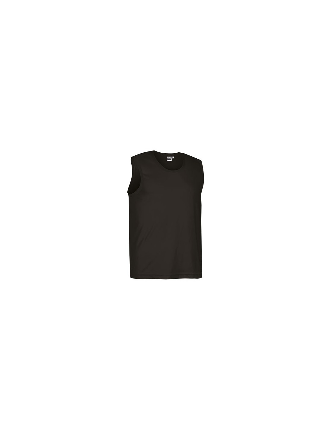 Camiseta ligera sin mangas, especialmente preparada para hacer deporte por su confección en tejido técnico transpirable, que facilita la evacuación del sudor corporal. Tirantes anchos, cuello redondo y doble pespunte en bajo, cuello y sisas.