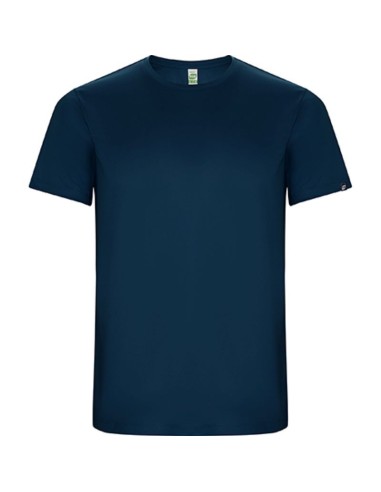 Es una camiseta de manga corta hecha de tejido de poliéster reciclado. La camiseta tiene cuello redondo y tiene el cubrecosturas a tono. Esta compuesto por 50% poliéster reciclado y 50% poliéster, waffle interlock, 135 g/m2.