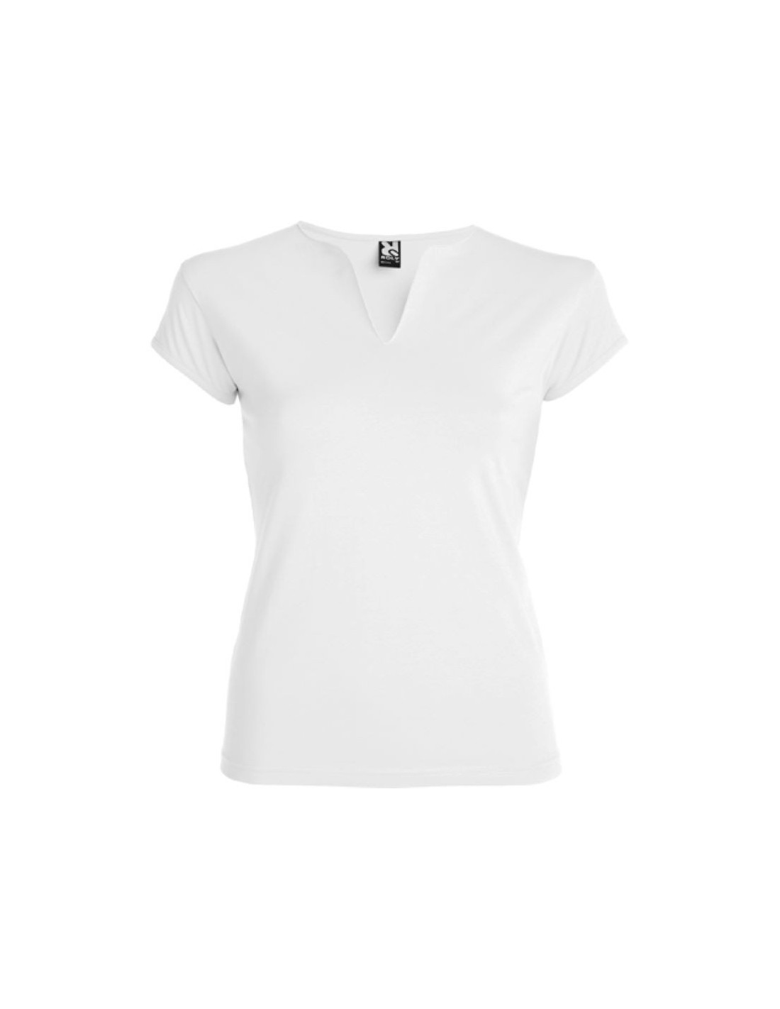 Es una camiseta de manga corta con el cuello redondo con abertura en V. Con costuras laterales. Hecha de 94% algodón peinado y 6% elastano, punto liso.