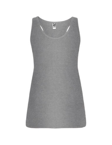Es una camiseta de tirantes con sisas y escote. La espalda es estilo nadadora y tiene costuras en los laterales. Esta hecha de 100% algodón, punto liso. Tendrás libertad al moverte. Esta disponible en 7 colores distintos. No se puede usar blanqueador. Se puede lavar como máximo hasta 40º.