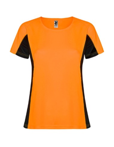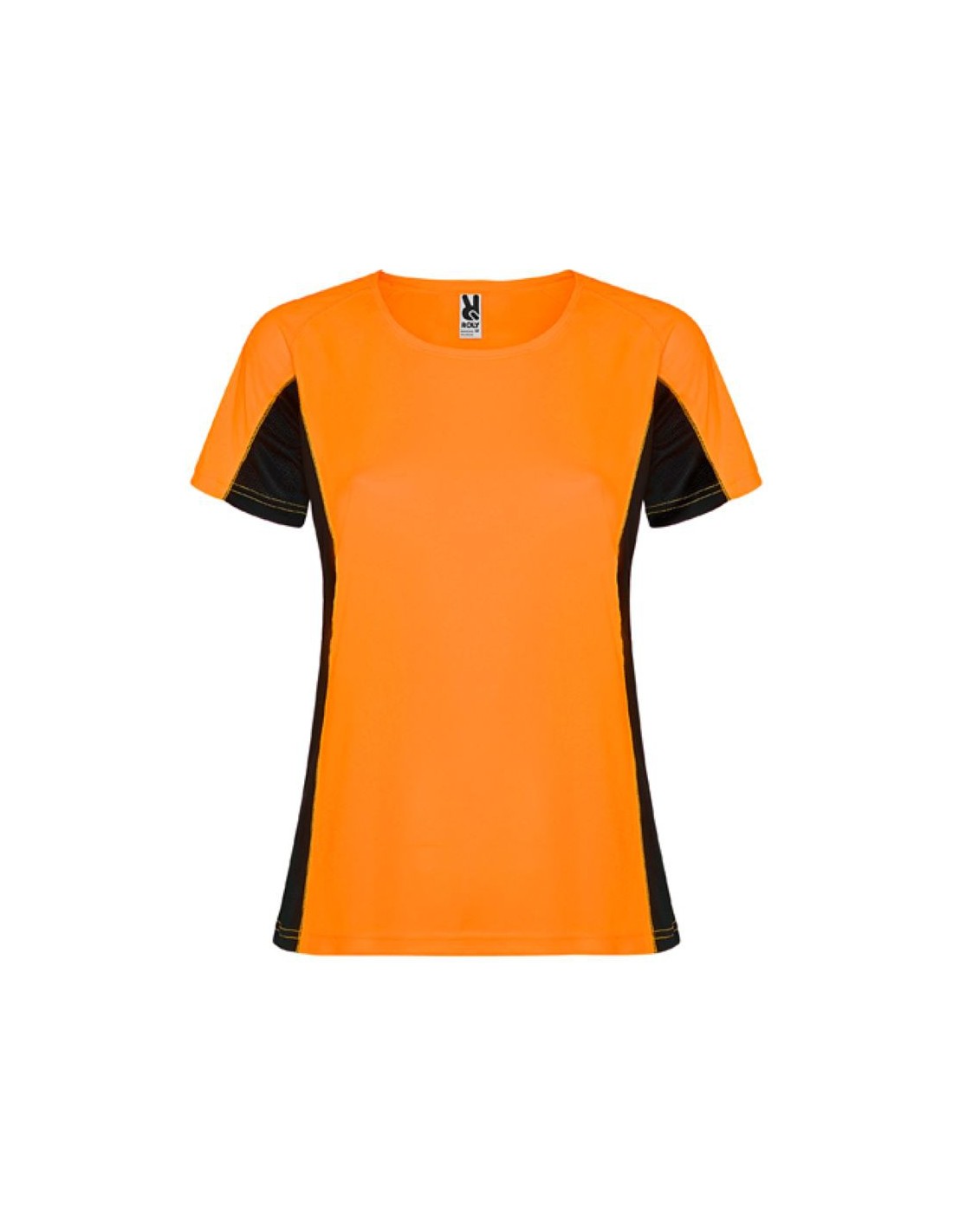 Es una camiseta técnica para mujer con dos tejidos de poliéster modelo SHANGHAI WOMAN. Es de la marca Roly.