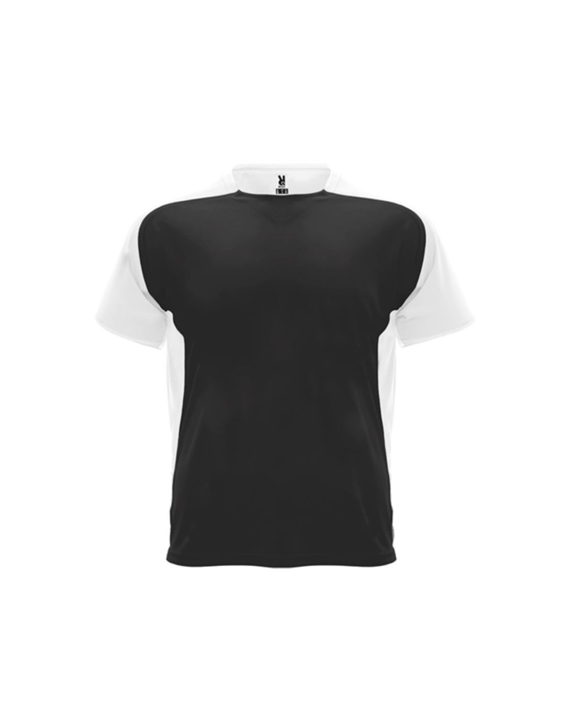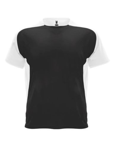 Es una camiseta de manga corta con el cuello redondo. Esta hecha de 100% poliéster, 140 g/m2. Es una camiseta bicolor perfecta para usar en cualquier tipo de deporte que te guste. Tiene diez colores distintos para que lo puedas conjuntar con cualquier pantalón. Este modelo es transpirable. Es suave, ligero y de fácil secado. Las mangas y paneles laterales a contraste.