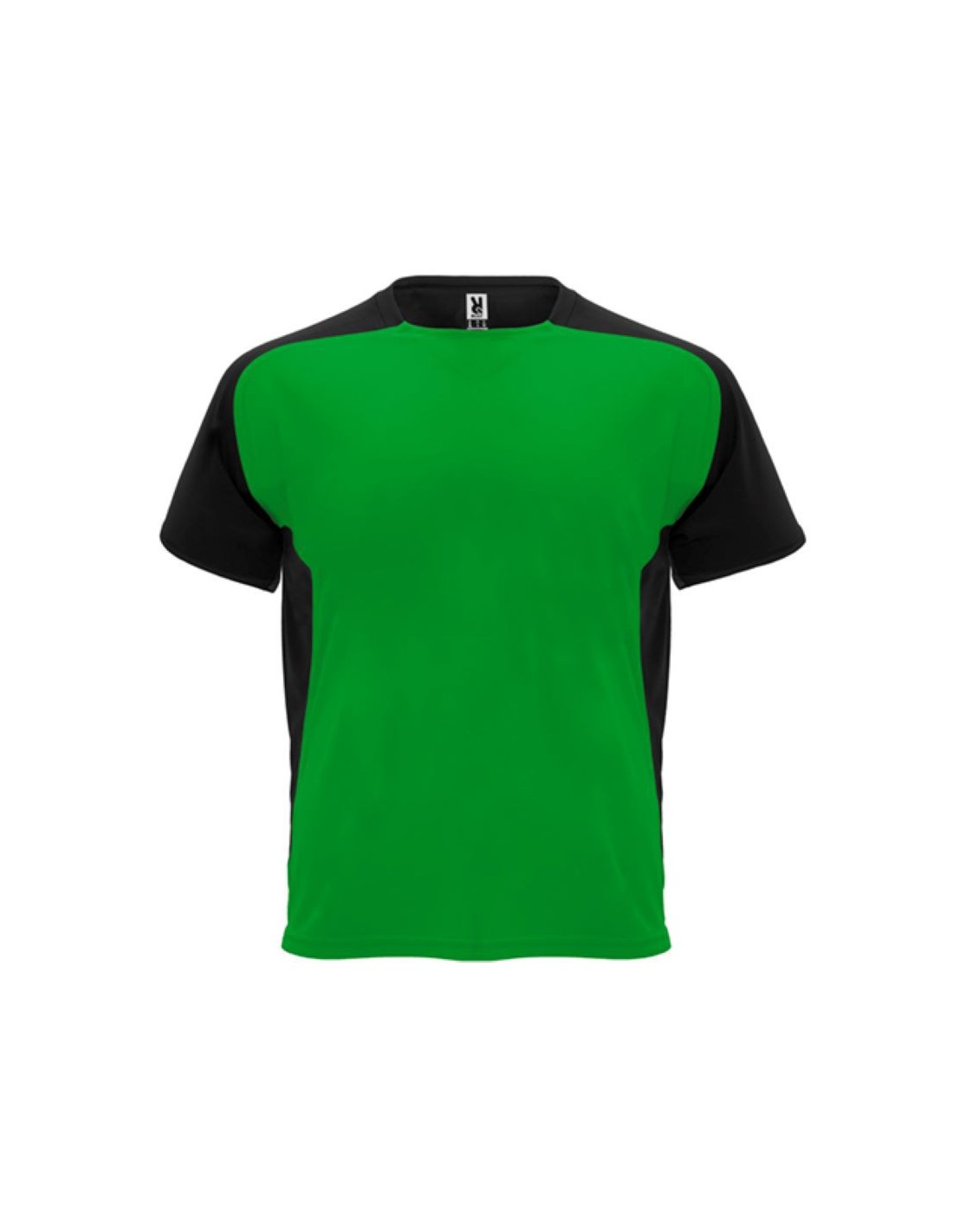 Es una camiseta de manga corta con el cuello redondo. Esta hecha de 100% poliéster, 140 g/m2. Es una camiseta bicolor perfecta para usar en cualquier tipo de deporte que te guste. Tiene diez colores distintos para que lo puedas conjuntar con cualquier pantalón. Este modelo es transpirable. Es suave, ligero y de fácil secado. Las mangas y paneles laterales a contraste.