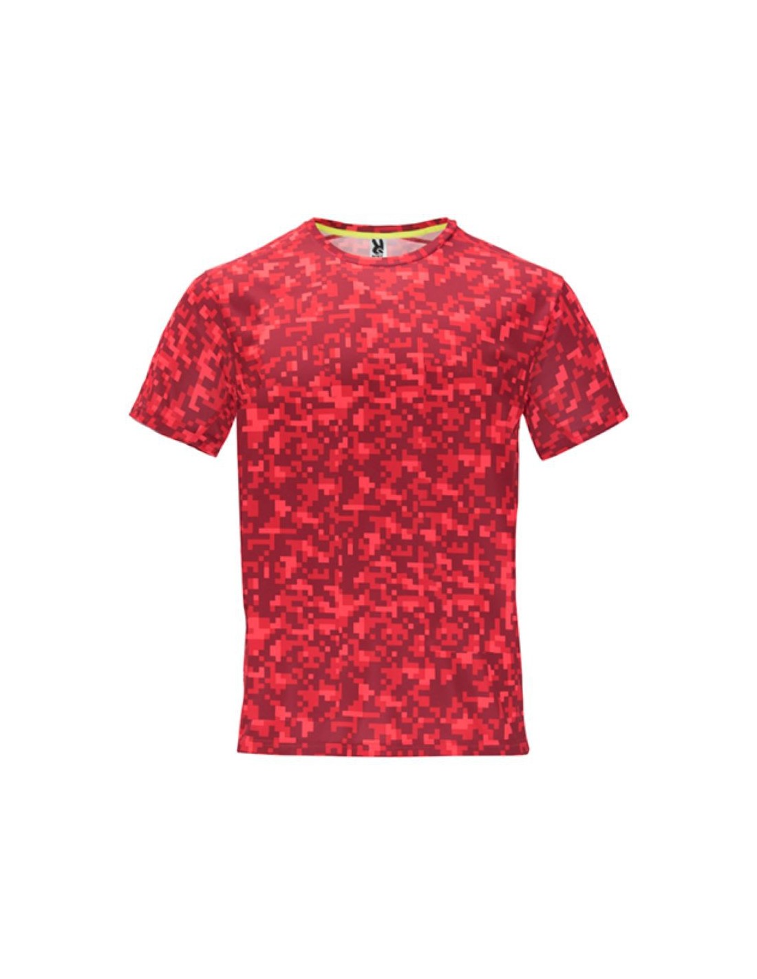 Es una camiseta técnica de cuello redondo. El modelo de la camiseta es transpirable. Cuenta con cuatro colores distintos y con el diseño de pixeles. Esta hecha de comp12, 0 g/m2. Es una camiseta perfecta para hacer cualquier tipo de deporte con un estilo pixelado.