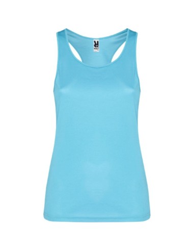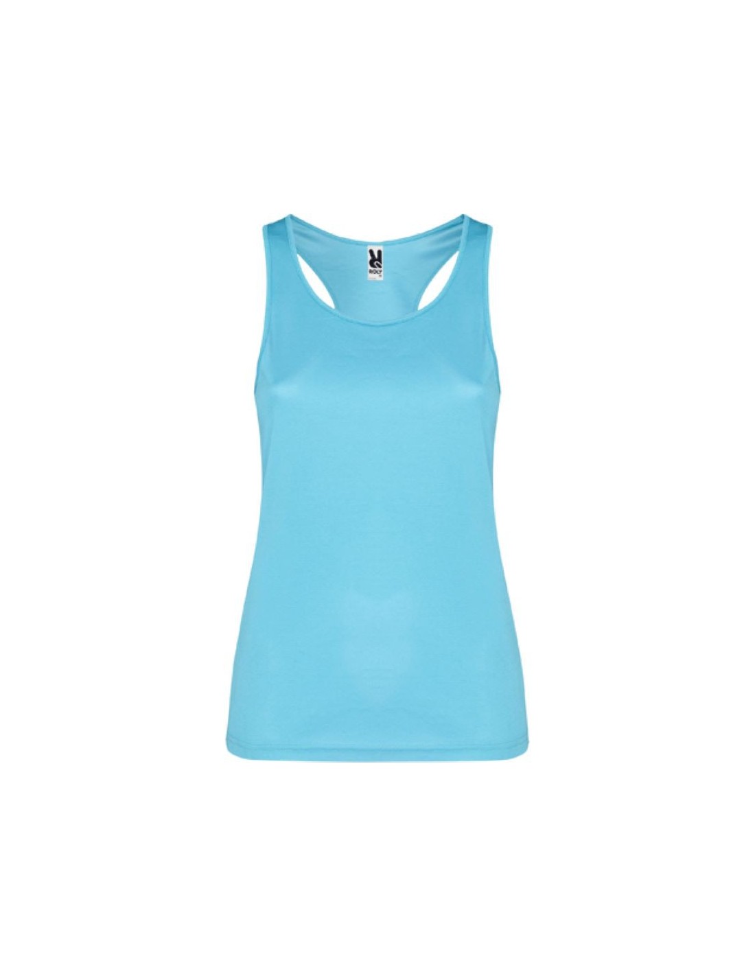 Es una camiseta de tirantes transpirable para mujer modelo SHURA. Es de la marca Roly.