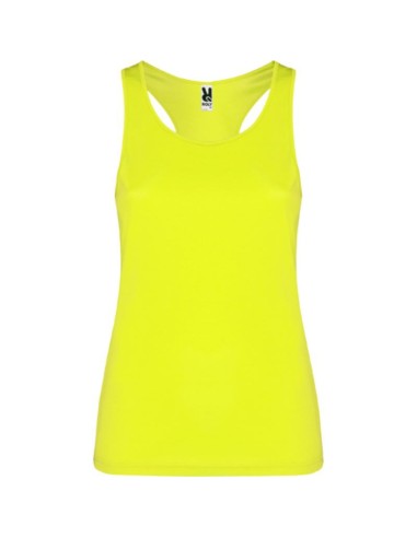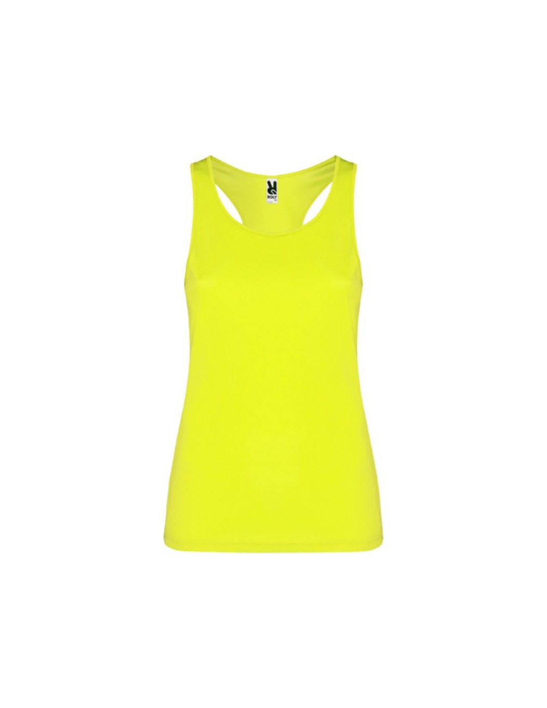 Es una camiseta de tirantes transpirable para mujer modelo SHURA. Es de la marca Roly.
