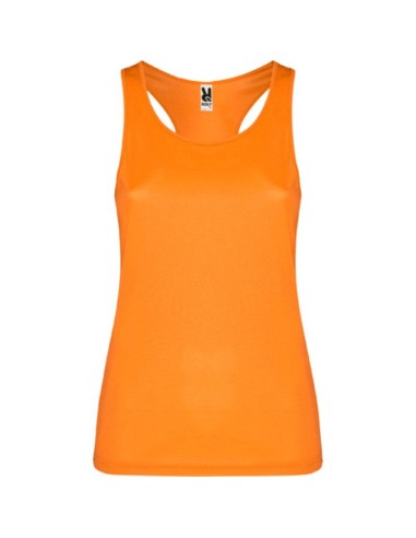 Es una camiseta de tirantes transpirable para mujer modelo SHURA. Es de la marca Roly.
