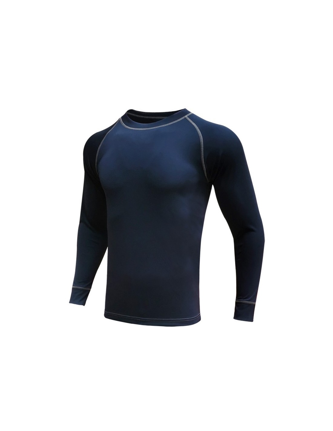 Esta camiseta interior del modelo AVIA es de color azul con manga larga y está fabricada en 100% poliéster Cooldry. Cuenta con una función antibacteriana y tiene un pantalón a juego, del modelo LIMIA.