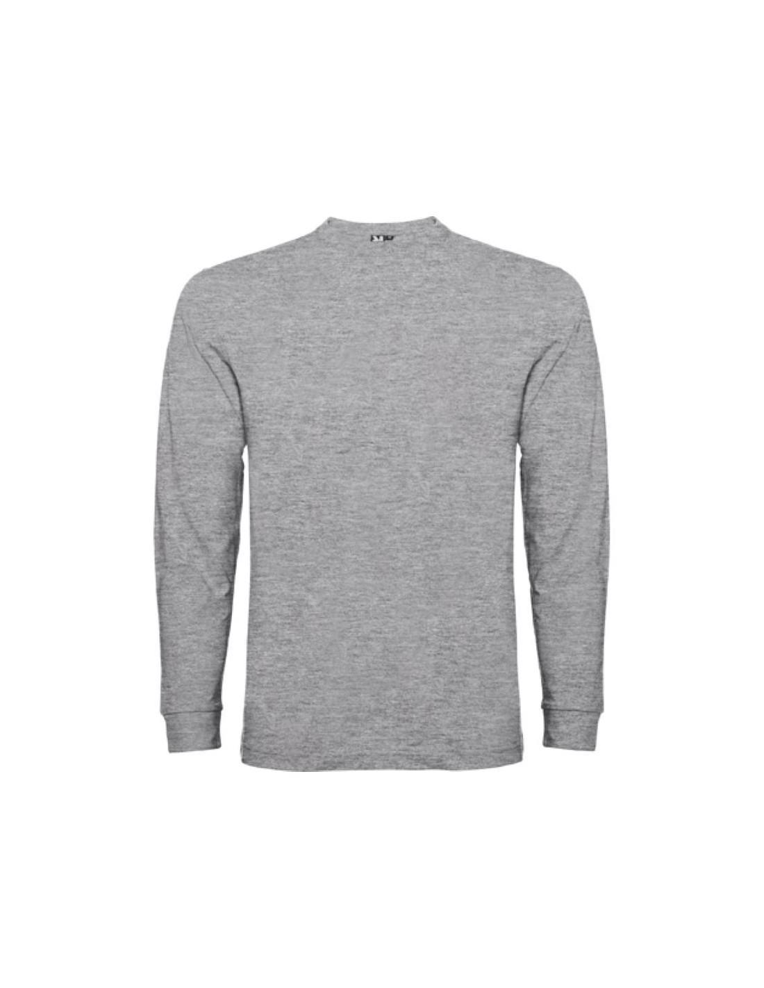 Camiseta de manga larga, con cuello redondo de 4 capas y puños canalé 1x1. Cubre costuras reforzado en cuello y hombros, costuras laterales.
