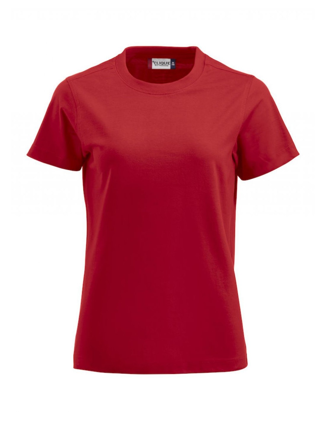 Camiseta modelo Premium-T Women. una camiseta para bordar, sublimar o serigrafiar con un cuello redondo en single jersey pre-encogido con costuras laterales, doble cuello en algodón y elastano.