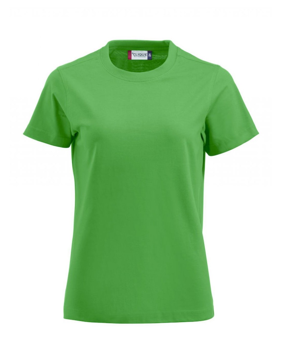 Camiseta modelo Premium-T Women. una camiseta para bordar, sublimar o serigrafiar con un cuello redondo en single jersey pre-encogido con costuras laterales, doble cuello en algodón y elastano.