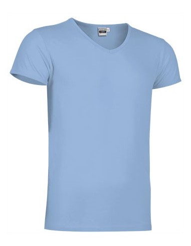 Camiseta elástica de diseño moderno ceñida al cuerpo, con cuello en forma de pico. Confeccionada en tejido de punto elástico de algodón peinado y elastano. Cuello fino y mangas ribeteadas con vivo. Doble pespunte en cuello, bajo y mangas. Camiseta de corte joven e informal.