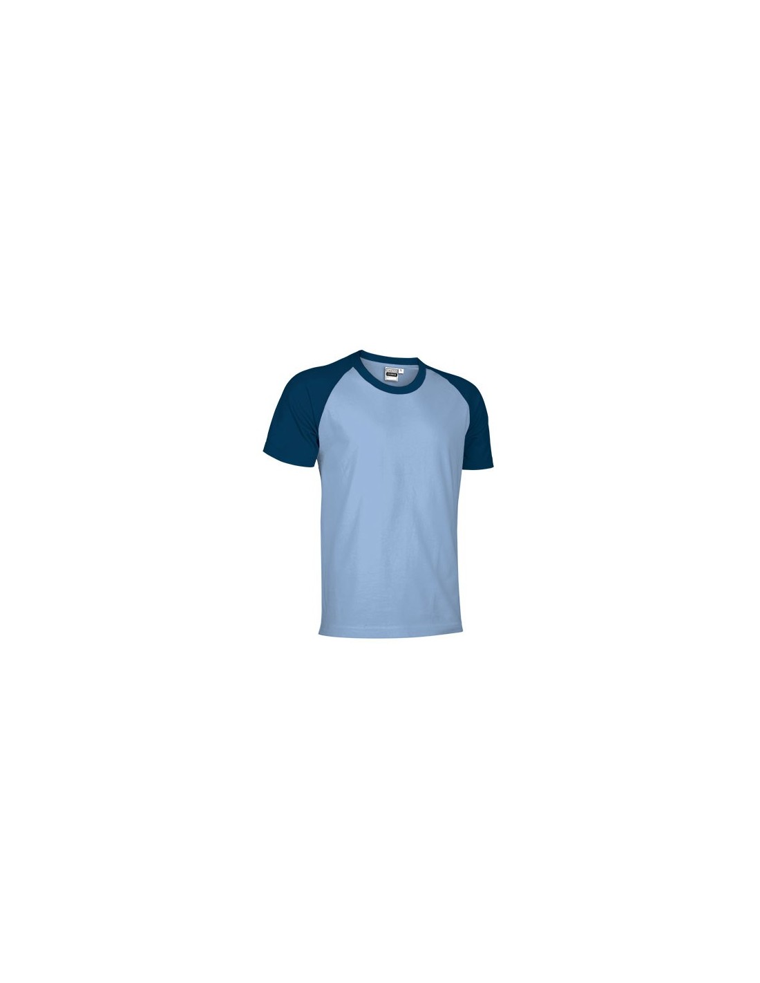 Camiseta bicolor, de corte clásico y manga ranglán, confeccionada en tejido de punto liso 100% algodón peinado. Cuello redondo de canalé y doble pespunte en cuello, bajo y mangas. Surtido de colores combinados. Estilo urbano y colorido.
