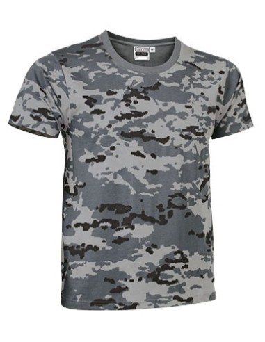 Camiseta con diseño especial de camuflaje pixelado, confeccionada en tejido de punto liso 100% algodón peinado con colores combinados dentro de la misma gama cromática.