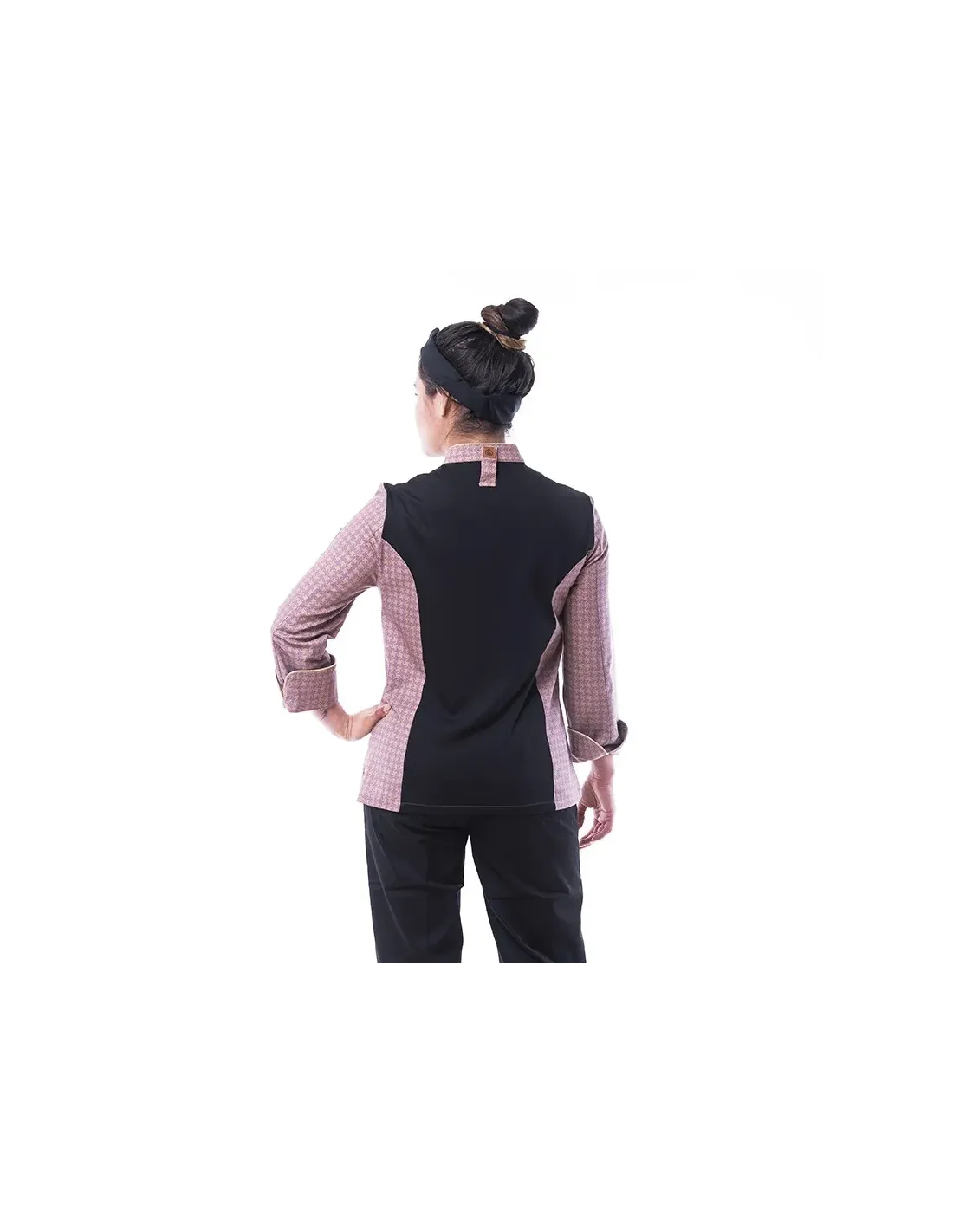 Esta chaqueta de cocina contiene un tejido gabardina elástica, cuenta con un diseño joven, fresco y muy actual. Presenta un estampado de molinillos, manga rollup, sujetadelantal y la espalda transpirable.