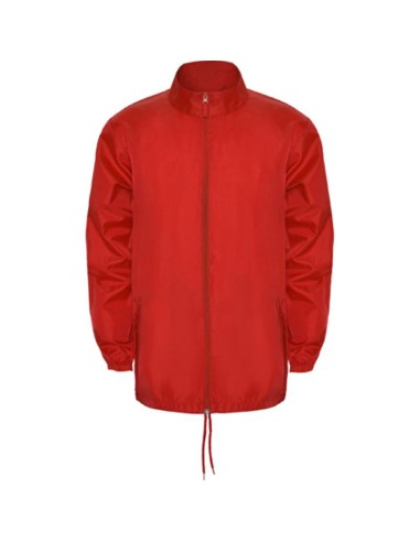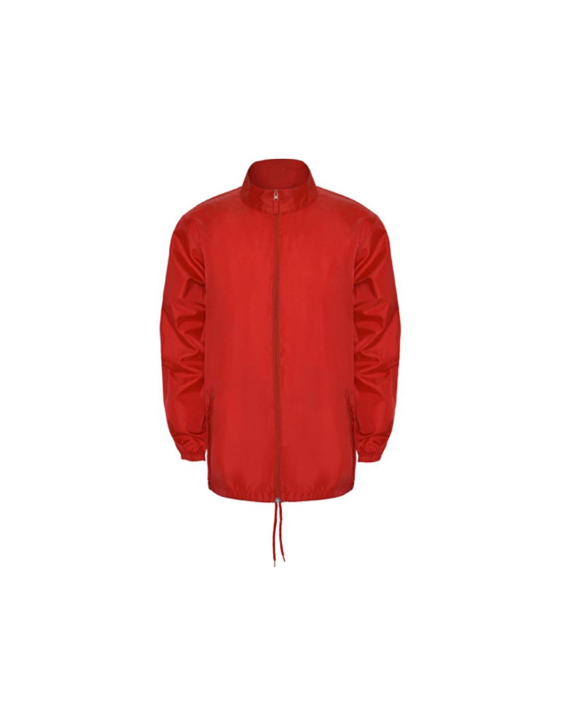 Con este chubasquero podrás sentir el agua recorriendo tu cuerpo pero sin mojarte. Esta hecha de 100% poliéster tafetán, 70 g/m2. Tiene unos cordones ajustables en el interior. Tiene dos bolsillos laterales y unos puños elásticos. Tiene una cremallera central a tono.