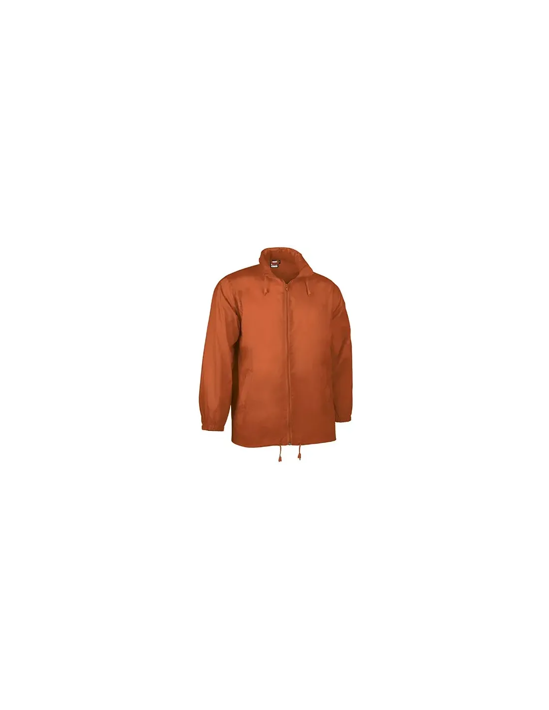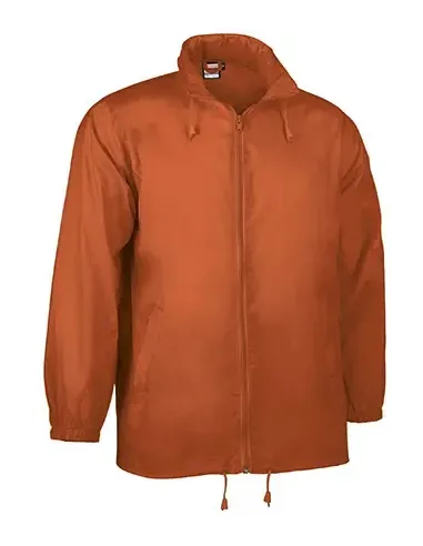 Chubasquero Rain de Valento con cuello alto y cierre delantero con cremallera, contiene una capucha recogida en un bolsillo con cremallera en el cuello y cintura y puños ajustables.